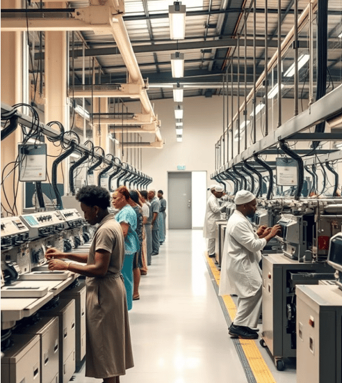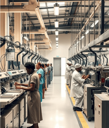 Collaboration avec les meilleurs fournisseurs d'équipements industrielles pour l'installation d'usines de pointes et un transfert de compétences techniques vers la jeunesse africaine